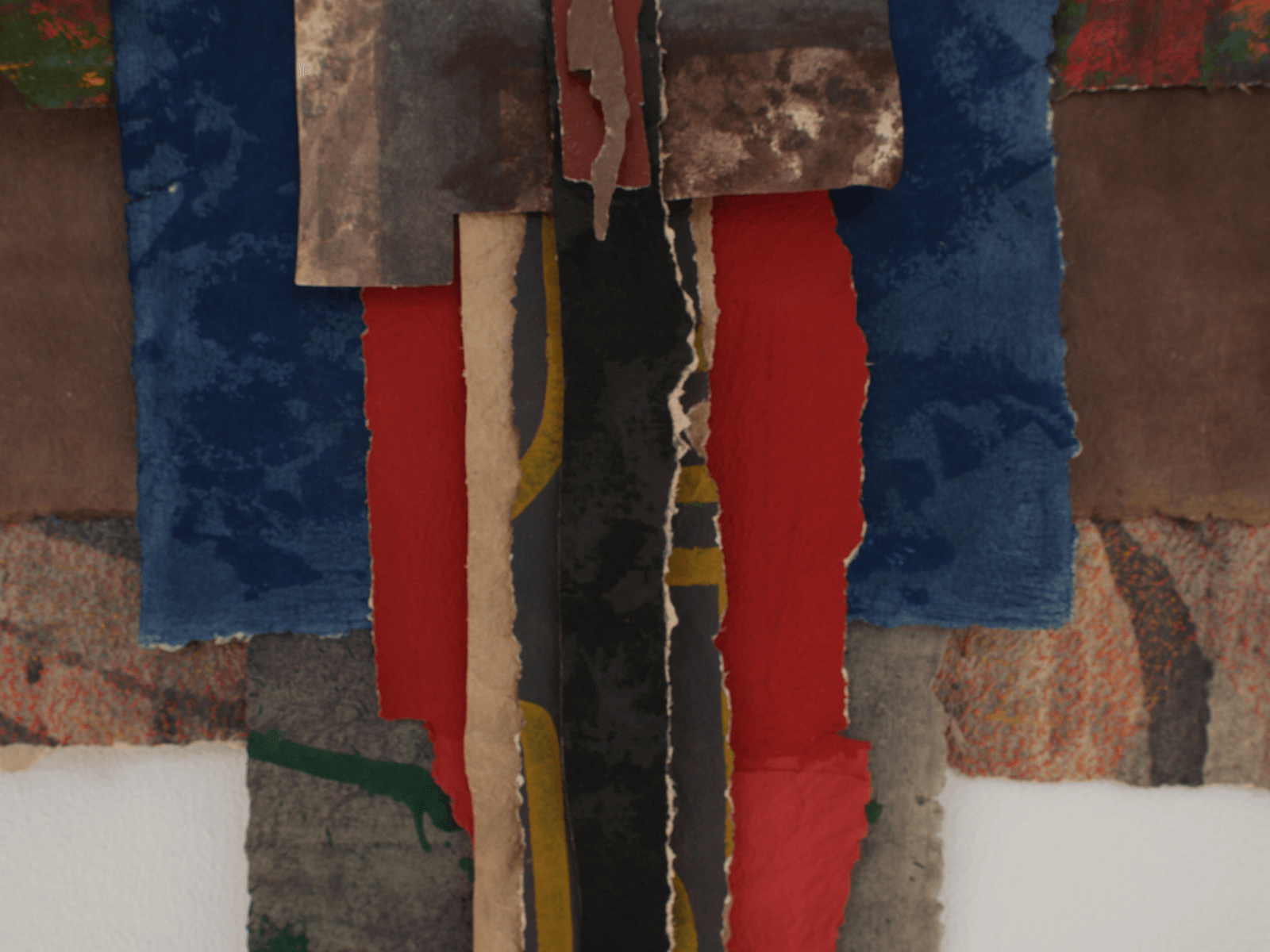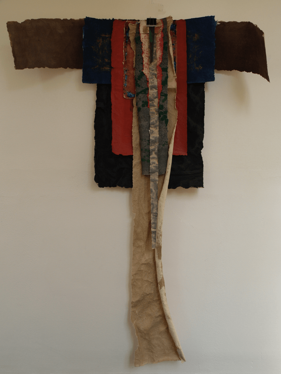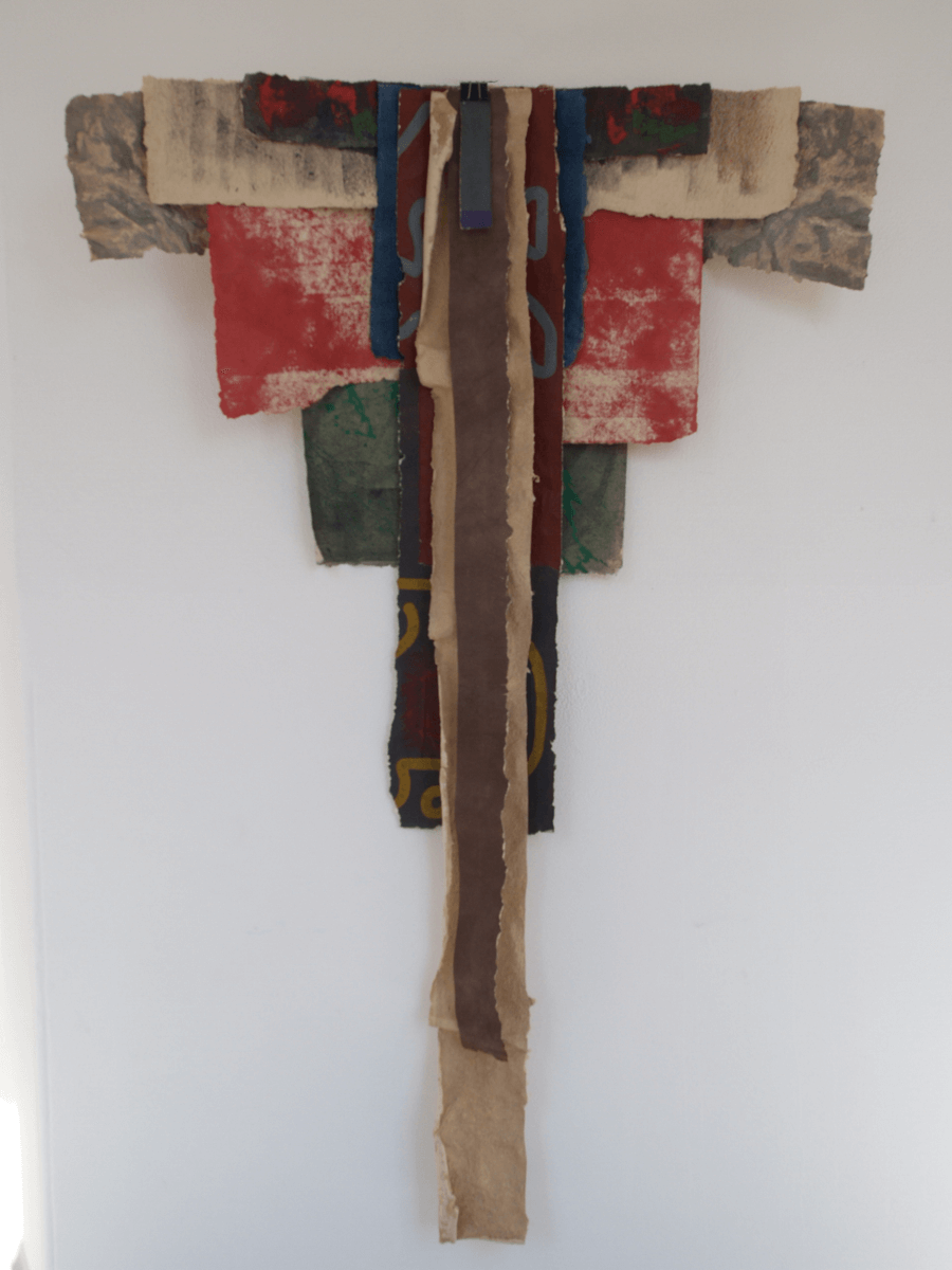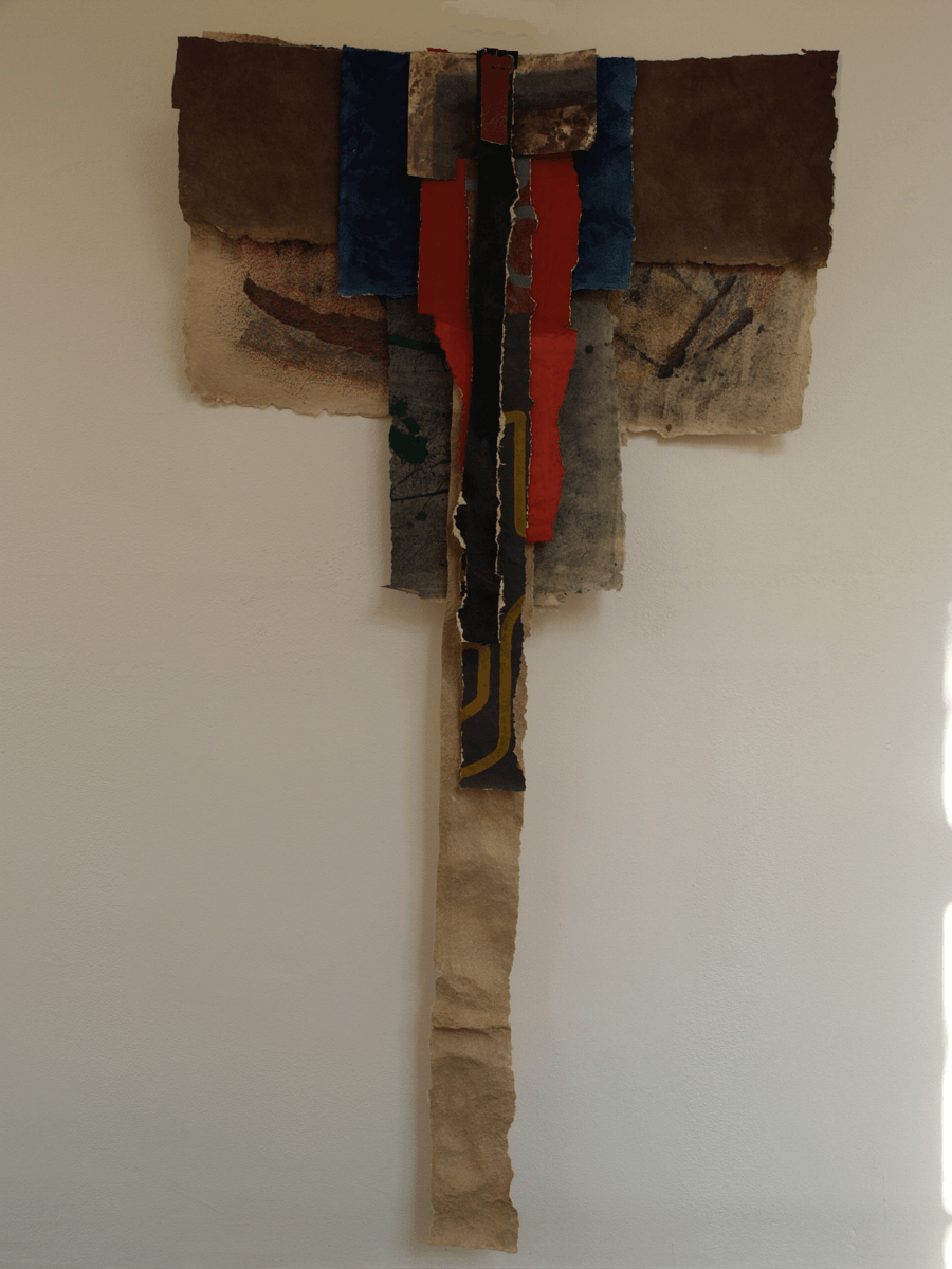 Beings that hover on the space. Colored paper streamers that rock in a sway, between surface and space, between image and figure. Features that crucify, dissect and dry out for transformation.